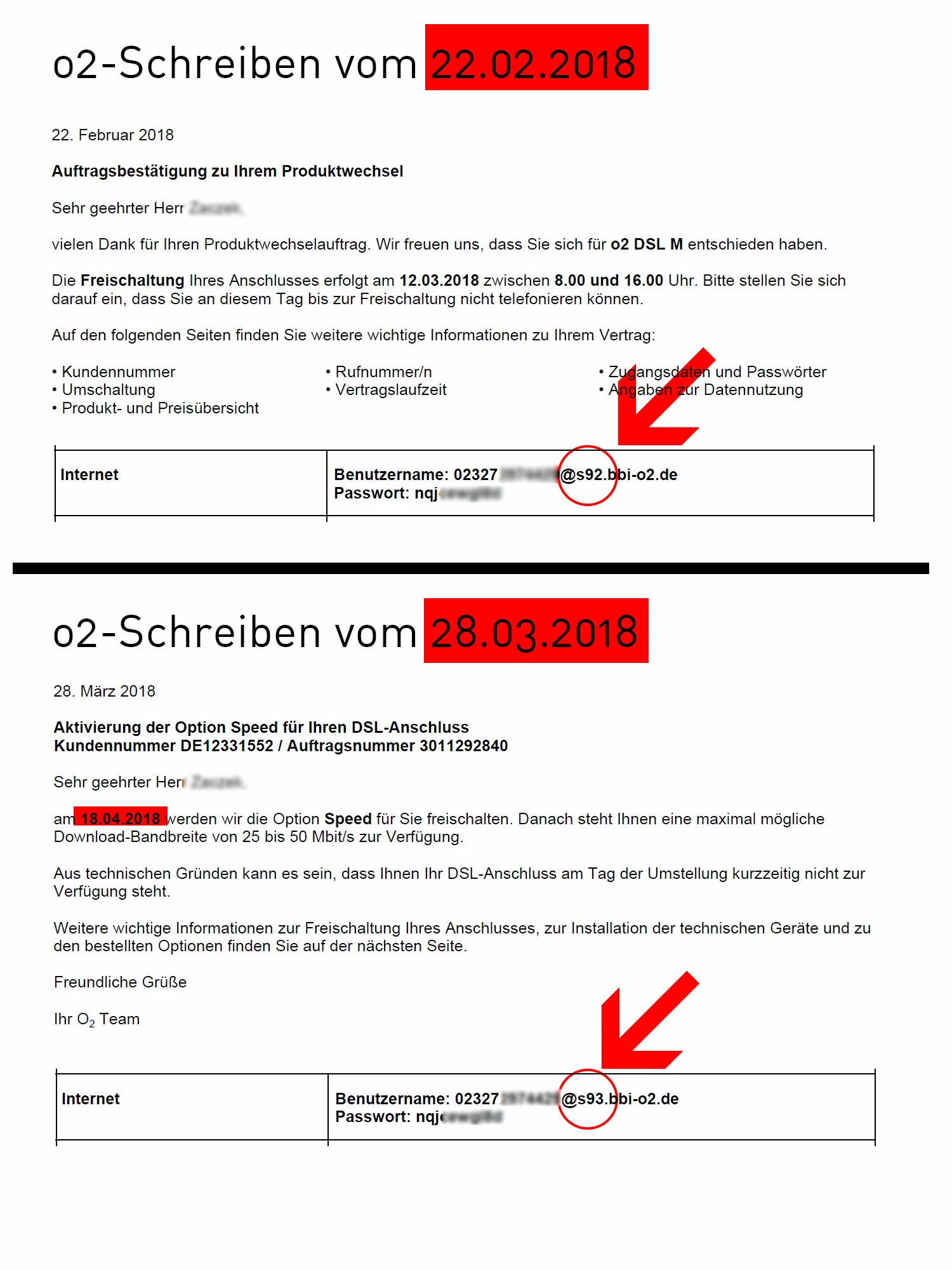 unser DSL-Anschluss sollte am 18.04. auf DSL-Speed (25-50 Mbit) hochgestuft werden. Vorab habe ich 2 Schreiben von o2 (siehe Anhang und unten) erhalten mit Zugangsdaten.