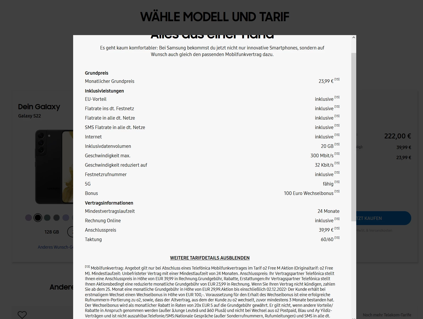Wo siehst man das? Der Screenshot enthält sämtliche o2 Tarifdetails die vor dem Kauf sichtbar waren.
