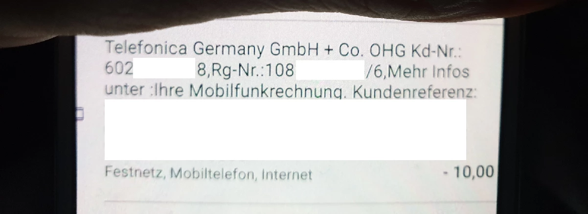 Steht in der abbuchung was von Mobilfunkrechnung oder von Ratenplan?