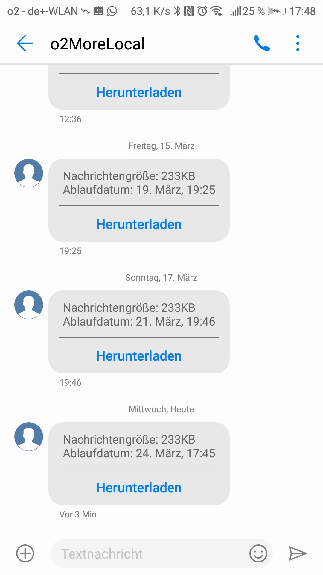 aktuell kann ich die Deaktivierung von "o2 more local" für die Nummer 415 sehen. Diese wurde am 15.3. eingetragen. Kam bis jetzt noch eine neue SMS?