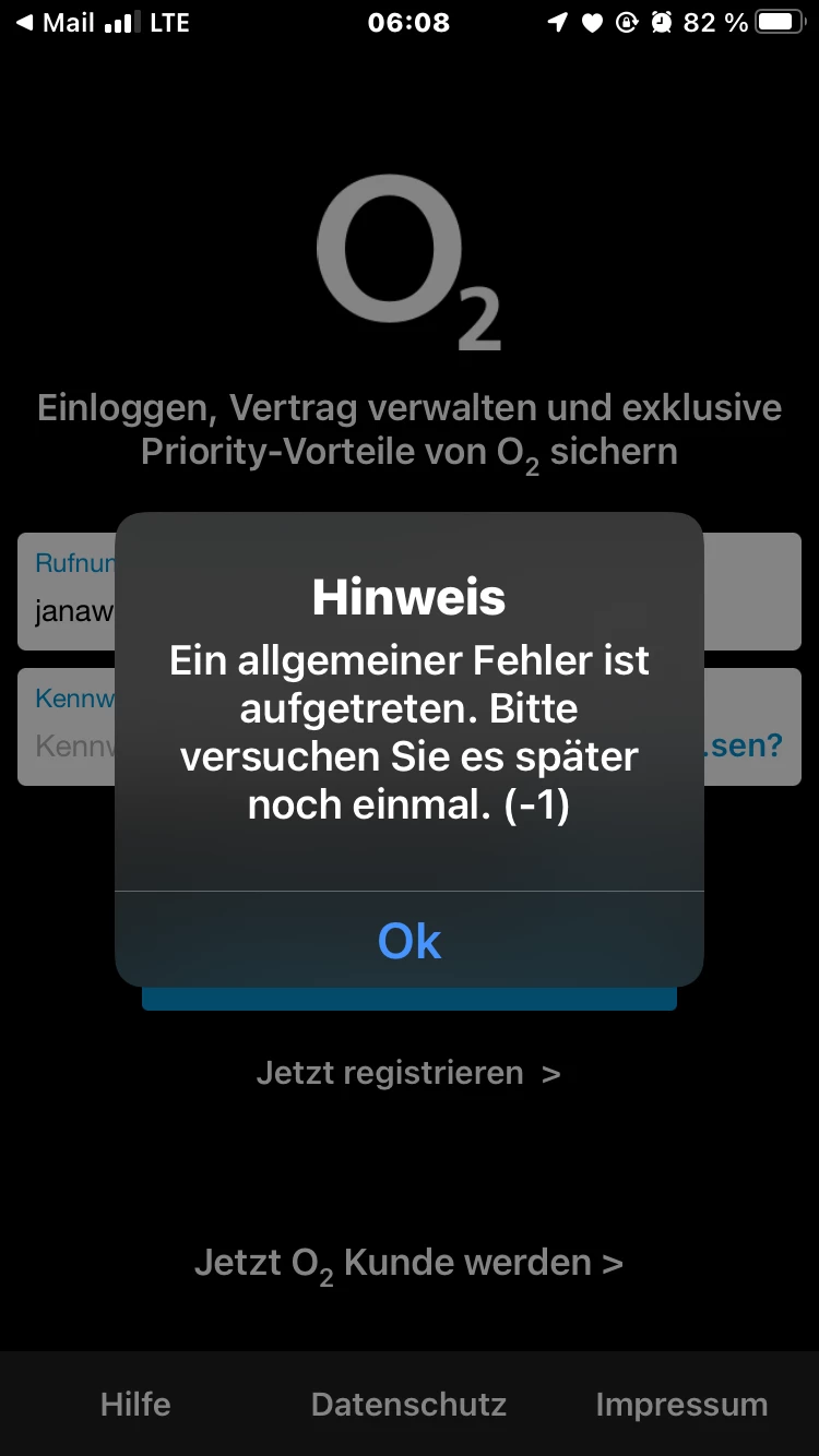 Ich habe eine Frage warum komme ich derzeit nicht in o2 rein da steht dann wenn ich mich anmelden möchte das : Hinweis allgemeiner Fehler ist aufgetreten Versuchen sie es später nochmal