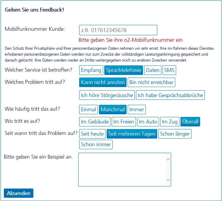 Wichtig ist die Angabe von Beispielen. Diese sollten die angerufene Rufnummer, das Datum und die Uhrzeit enthalten.