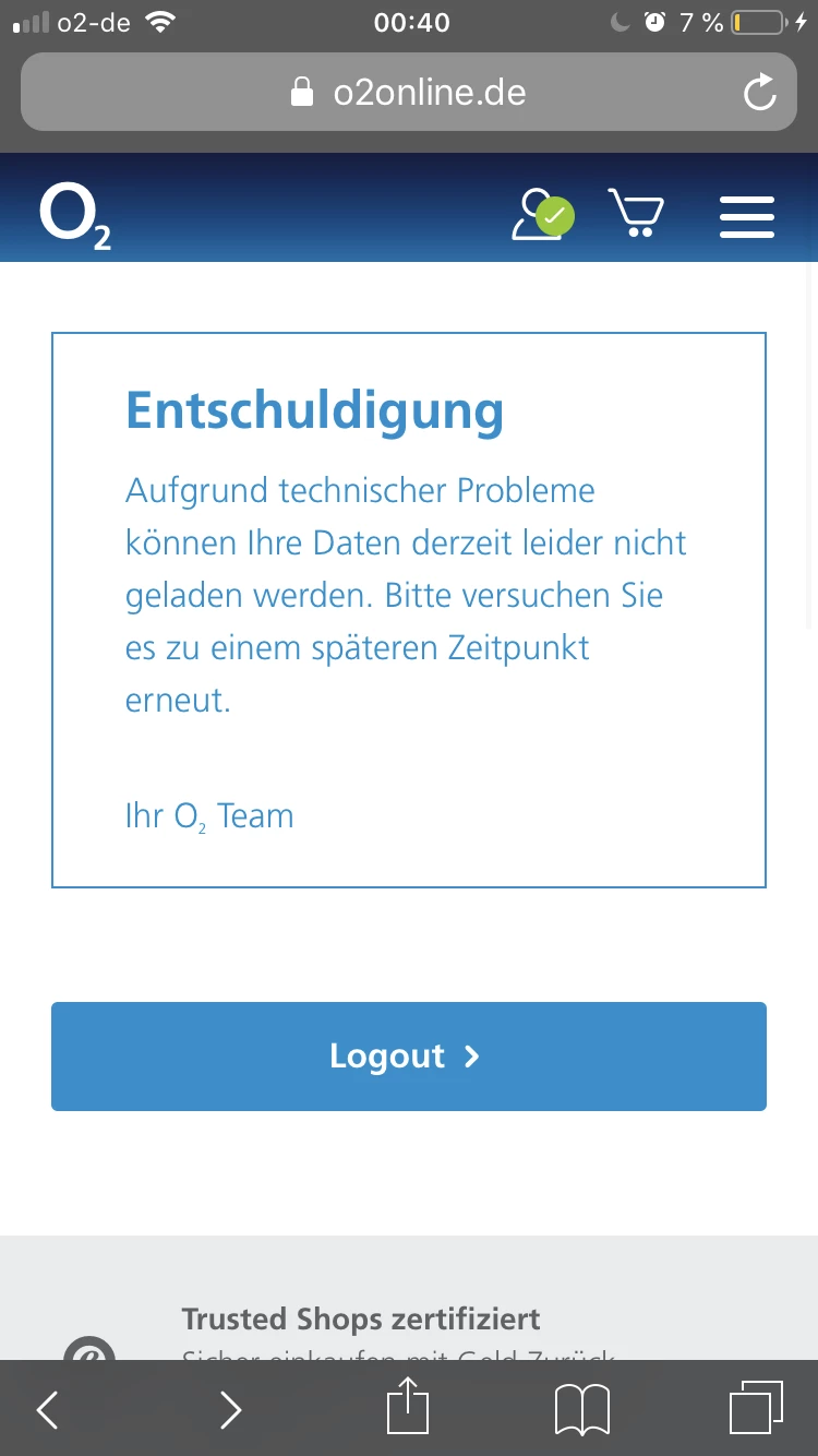 Kann einfach nicht die o2 App laden & mein Datenvolumen, Rechnungen etc. angucken..