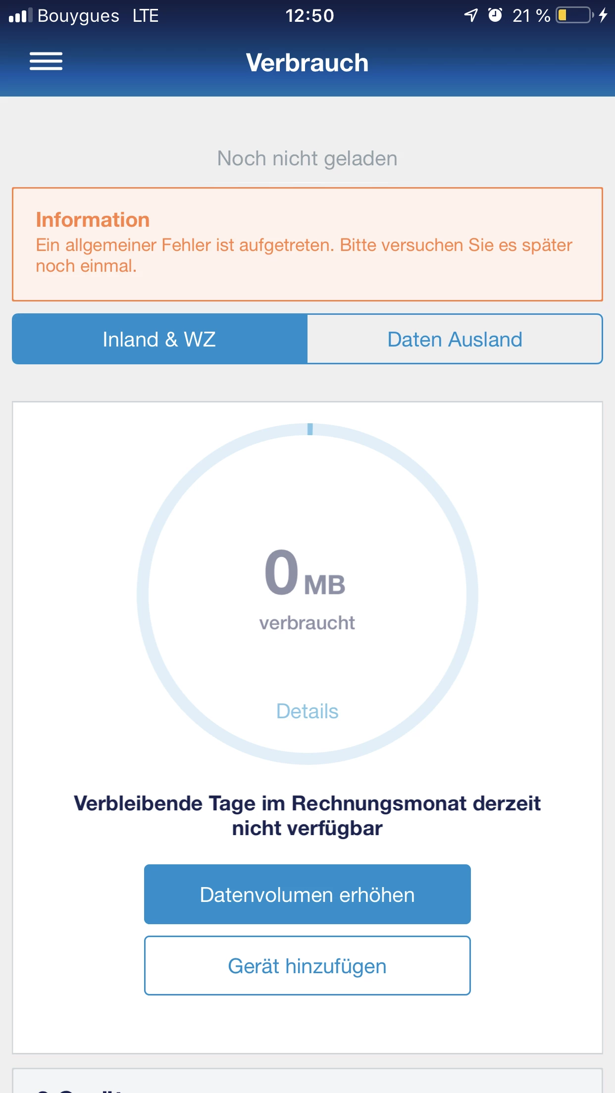 Datenvolum kann ich auch nicht einsehen, der Zeit mir ständig dies hier an.