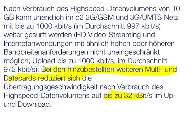 Den Satz verstehe ich nicht. Wenn du dein Inklusivvolumen verbraucht hast, surfst du mit ca. 225 kBit/s.