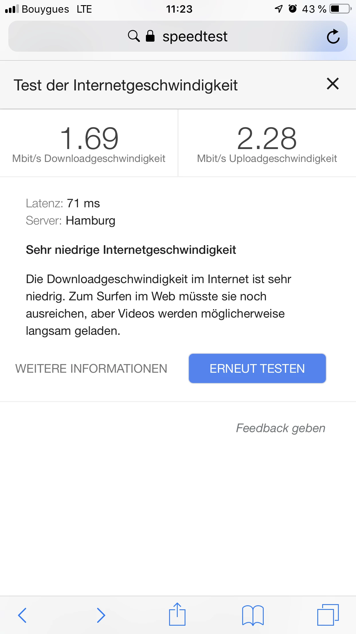 ...aber jetzt Surf ich ja wieder mit 2 gb high-speed, auch wenn es nur auf 1/4 Geschwindigkeit als in Deutschland gedrosselt ist, kann ich mir nicht vorstellen, dass ich doch trotzdem bisl surfen kann. Oder liege ich da falsch, es ging ja garnicht
