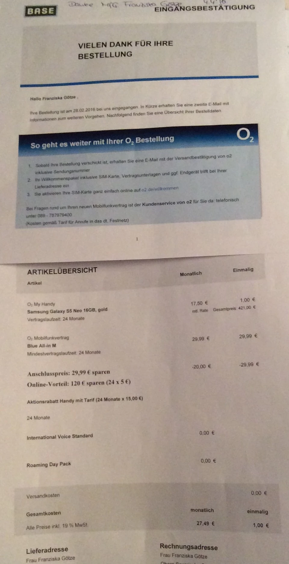 über Base habe ich online am 28.2.2016 einen Handyvertrag inkl. Handy abgeschlossen.