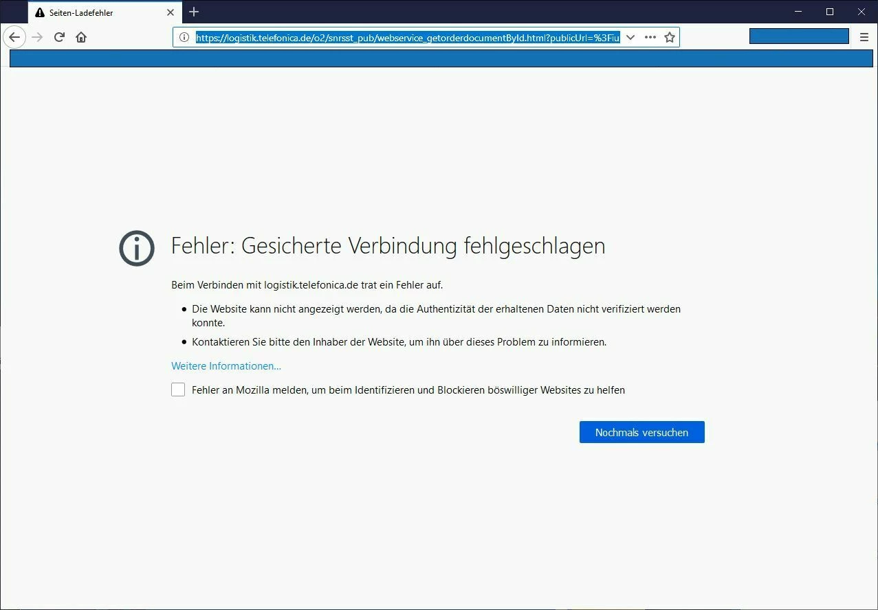 Ferner wurde mir bislang auch keine Widerrufsbeleherung zugesendet, noch ist diese in Mein O2 verfügbar, hier wird beim Aufruf des Dokuments ein Fehler angezeigt.