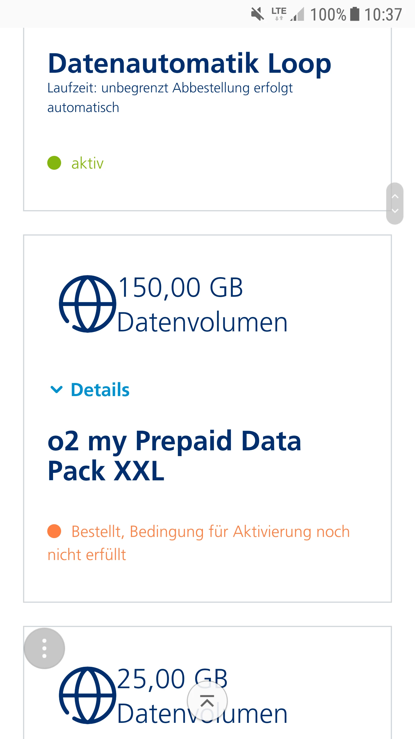 Ich habe am Freitag 05.04.2019 ein Angebot wargenommen da bei mir im Haus derzeit kein Internet anliegt. Eine neue Registrierung mit Prepaid-Sim und 15€ Aufladung um das 150 gb Datenpaket zu bekommen. Nun steht da bei Tarifen: "Bestellt/Nicht alle Forderungen erfüllt". Wo liegt jetzt das Problem. Wo muss ich noch eelche Forderung erfüllen? Die Bestätigungsemail zur Registrierung ist da. Mit dem Guthaben habe ich jetzt das 19,99€ Datenpaket gekauft um überhaupt ins Internet zu kommen. Nur ist das 150GB Paket noch immer nicht verbucht worden.