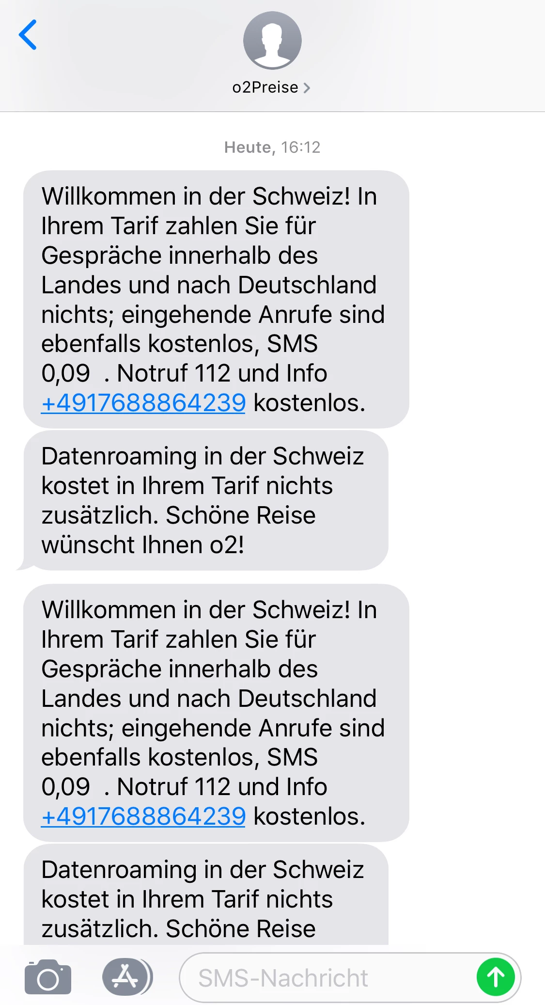 gerade bin ich in die Schweiz eingereist und habe diese SMS bekommen.