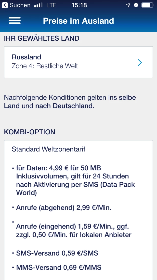In welchem Land befindest du dich denn? Je nach Tarif und der Weltzone, gibt es da unterschiedliche Optionen.
