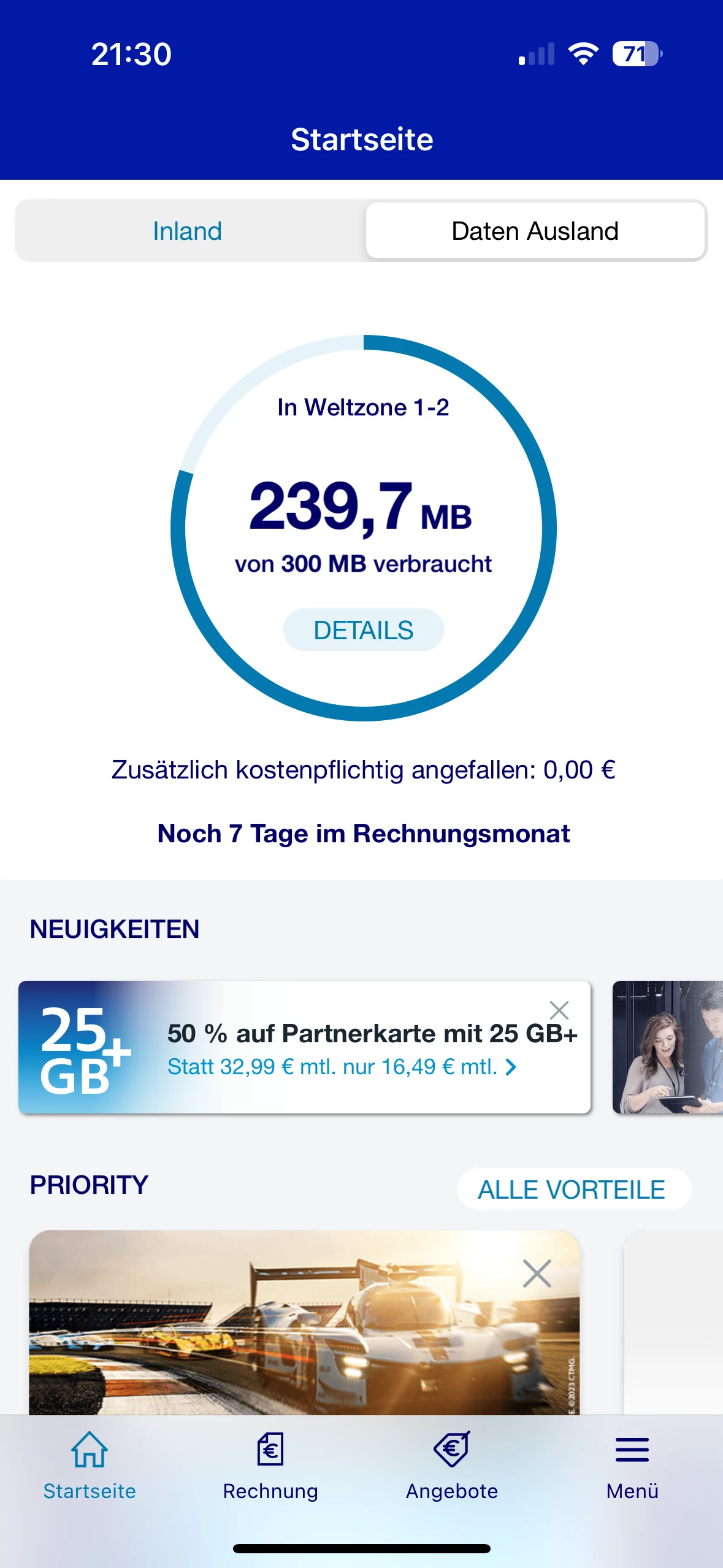 war am Wochenende in den Niederlande und in der App wurde mir angezeigt das ich nur 300 mb hätte.
