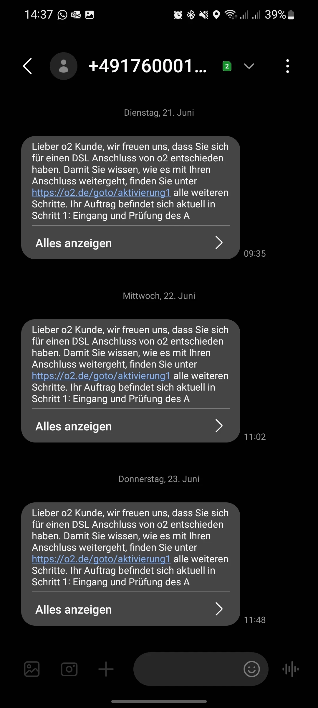 Sagt mal o2, wollt ihr mich auf den Arm nehmen? Wenn ihr eure eigenen Termine nicht halten könnt, seit doch zumindest nicht so dreist und ändert die Daten vom Kunden ab, damit ihr Recht behaltet..