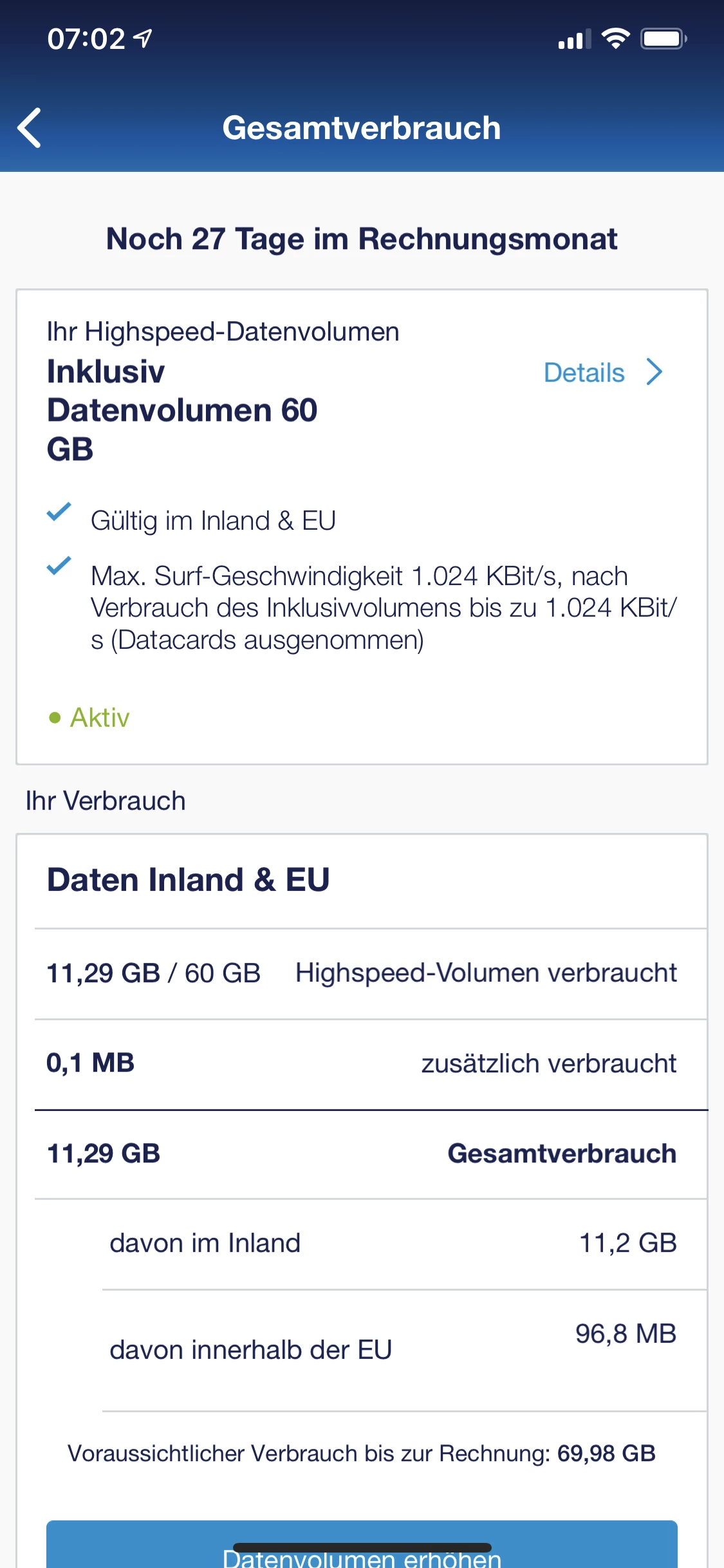 ich habe den Free L Boost Vertrag mit 60GB LTE HighSpeed Inklusivvolumen gebucht.