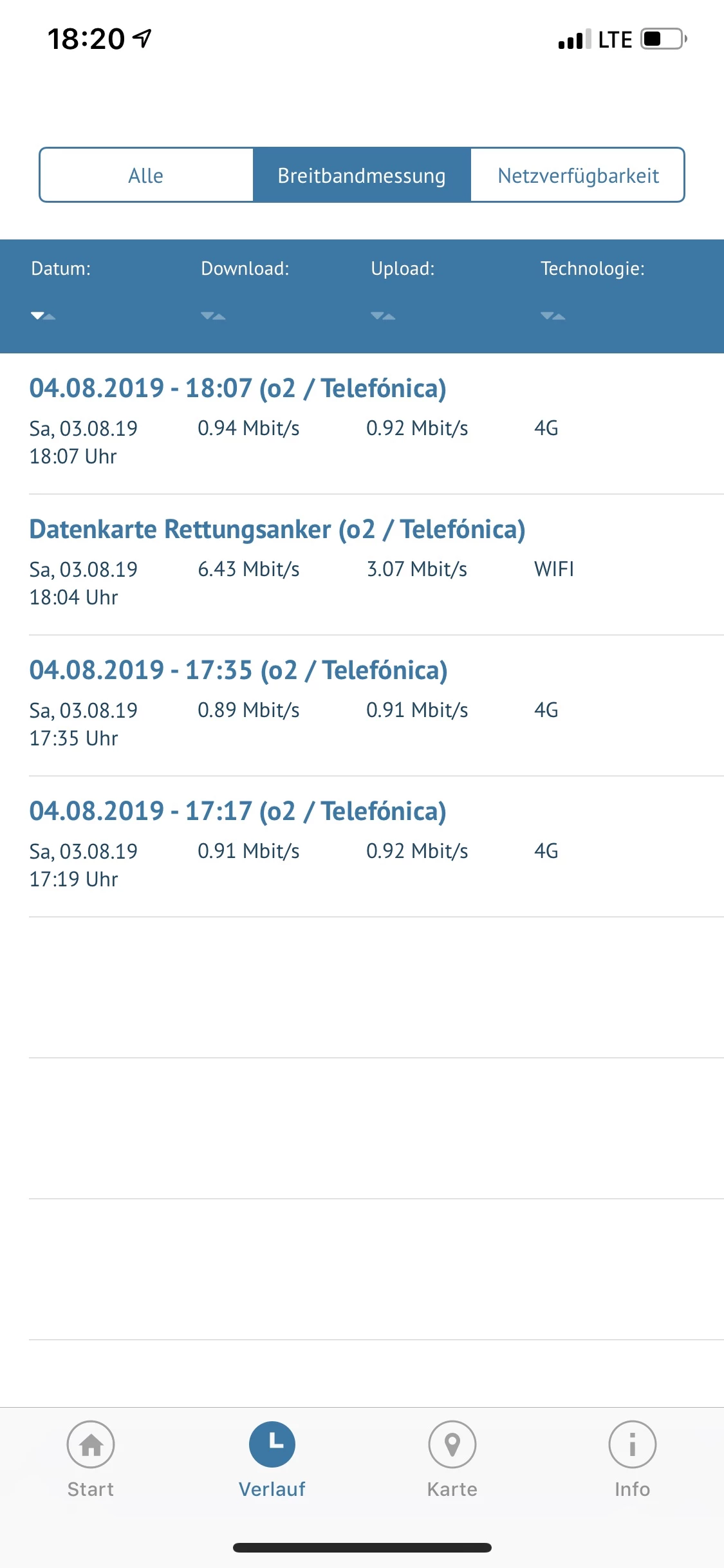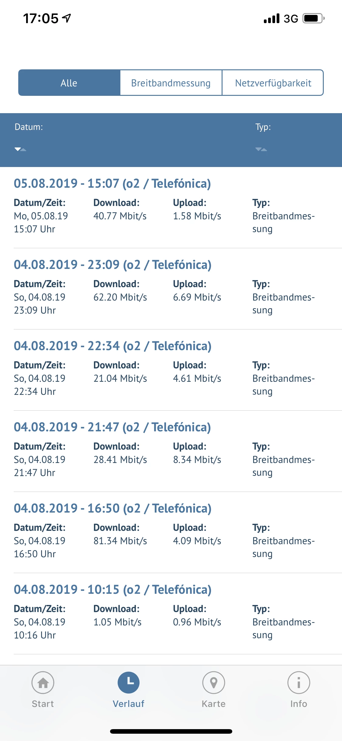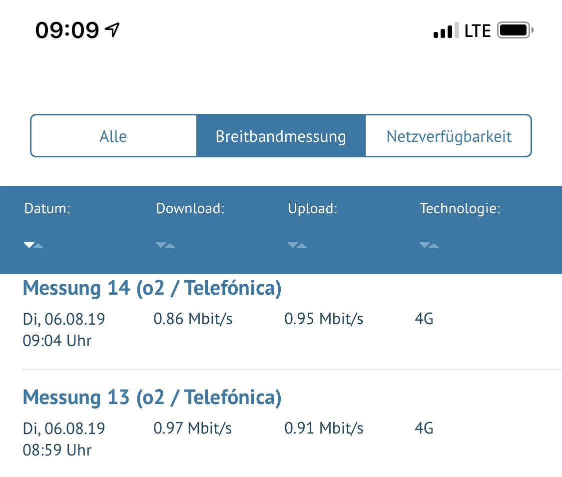 Anmerkung zu den Messungen (Rettungsanker ist die Datenkarte zum Tarif, die nicht der Drosselung zu unterliegen scheint, allerdings auch keine wirklich gute Leistung erbringt !)