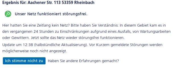 laut Livecheck gab es eine Störung im Bereich der Aachener/Koblenzer Straße. --> Ist das in deiner Nähe, und merkst du noch Einschränkungen?