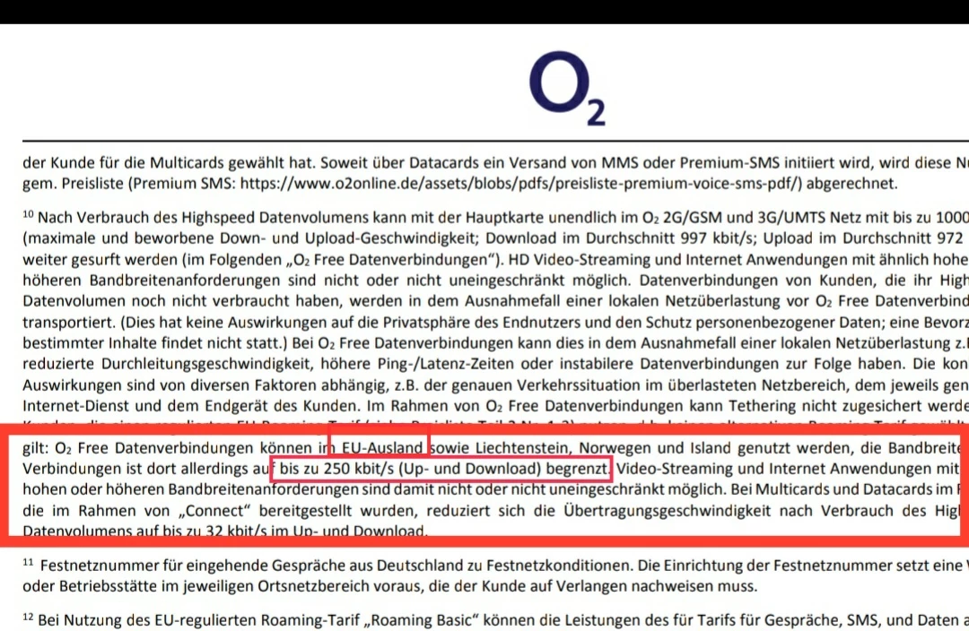 Im EU Ausland wird "Free" auf 250 statt 1000 kbits gedrosselt. Steht auch in den AGB.