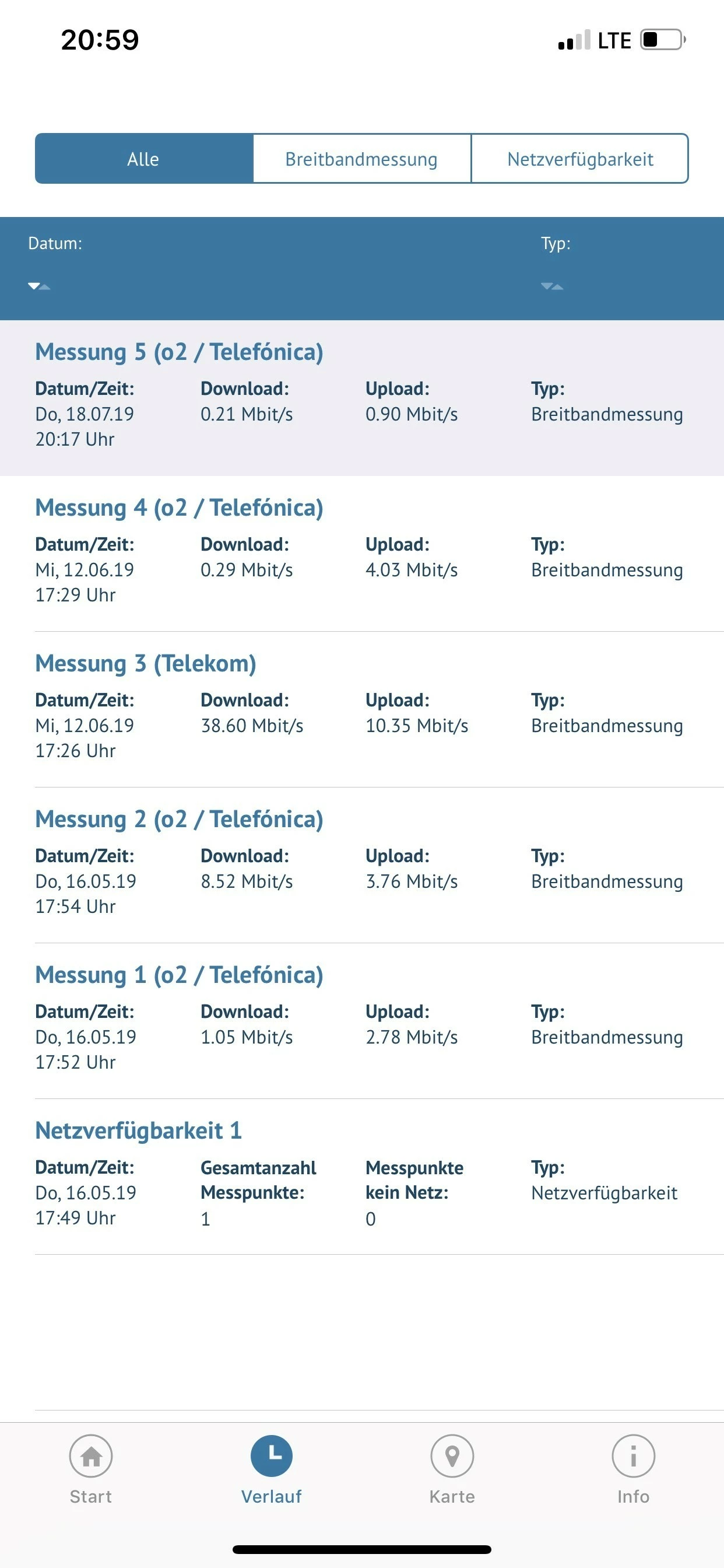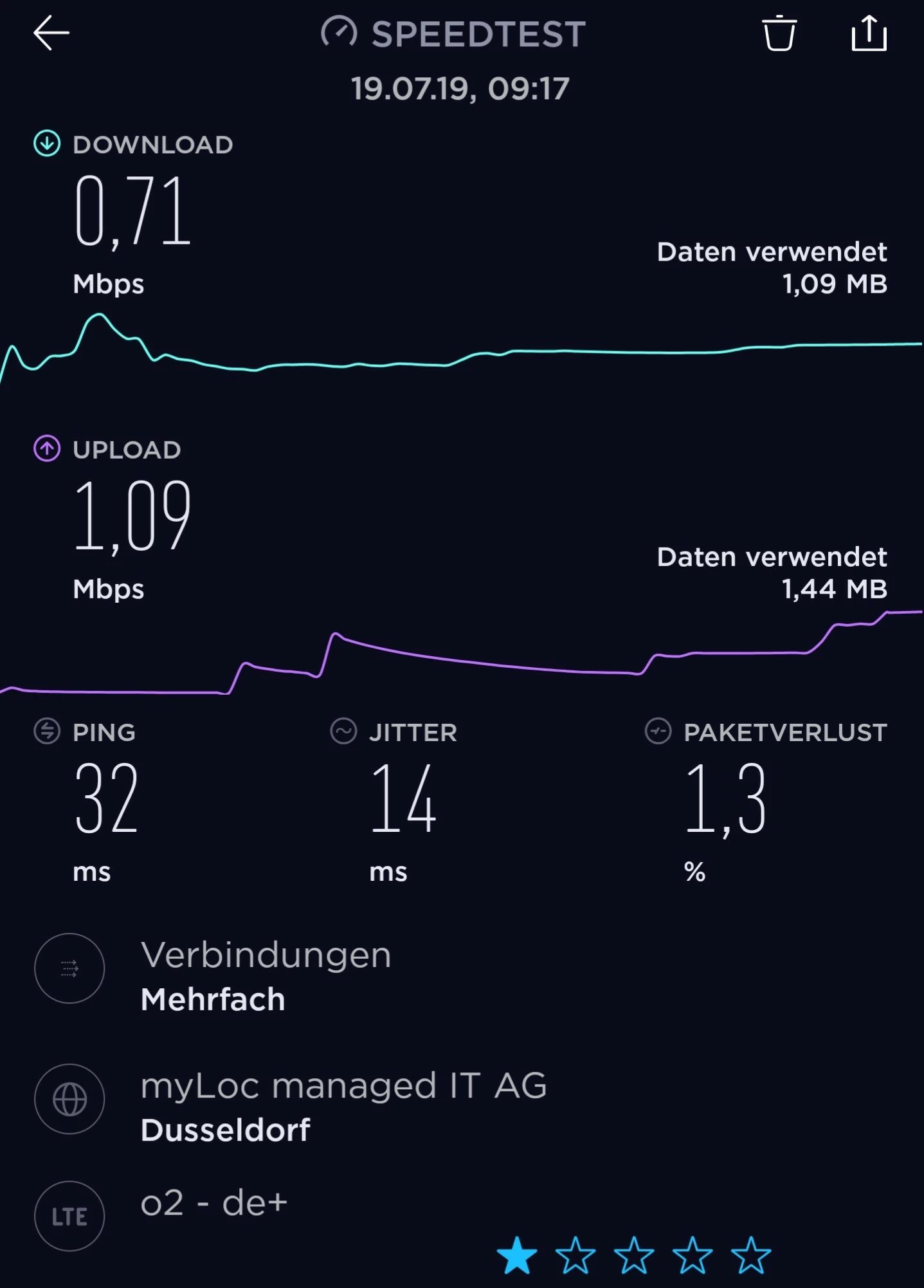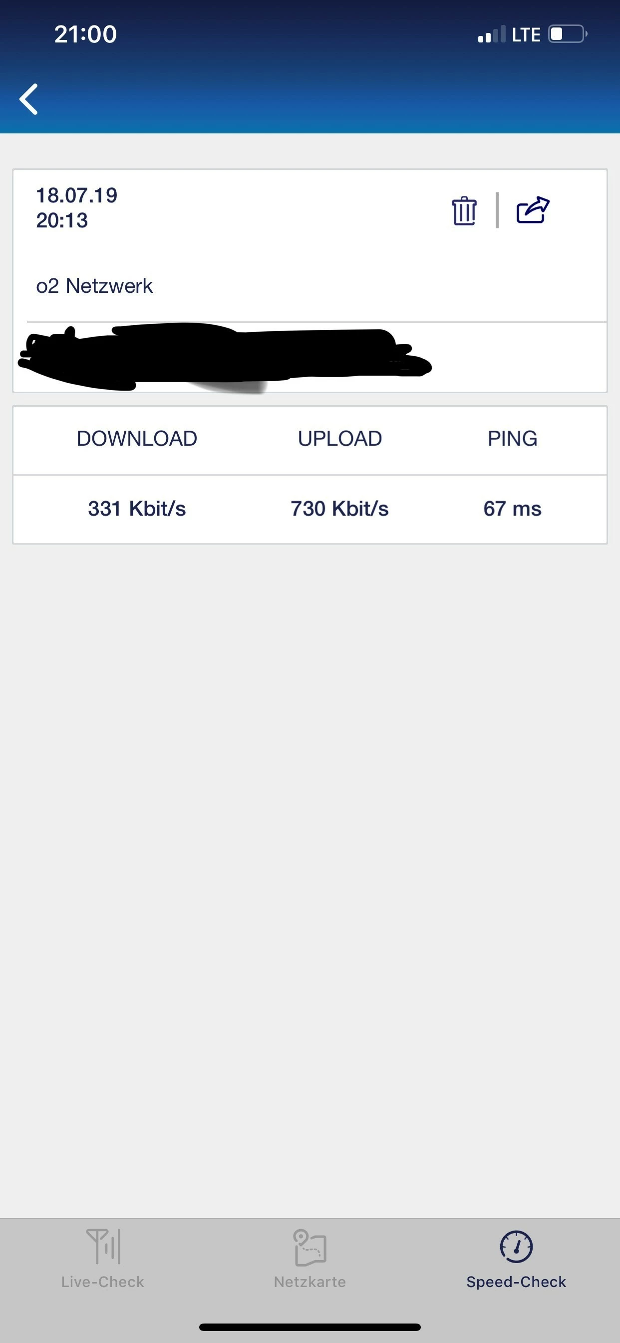 und auch auf der Arbeit max 5mb down. im zuhause bereich ist die LTE Antenne vom live check mit der App gerade mal 200m -500m von meiner Wohnung entfernt und auf der Arbeit das gleiche