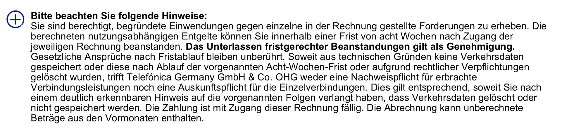 dann widerspreche der Rechnung schriftlich innerhalb von 8 Wochen.