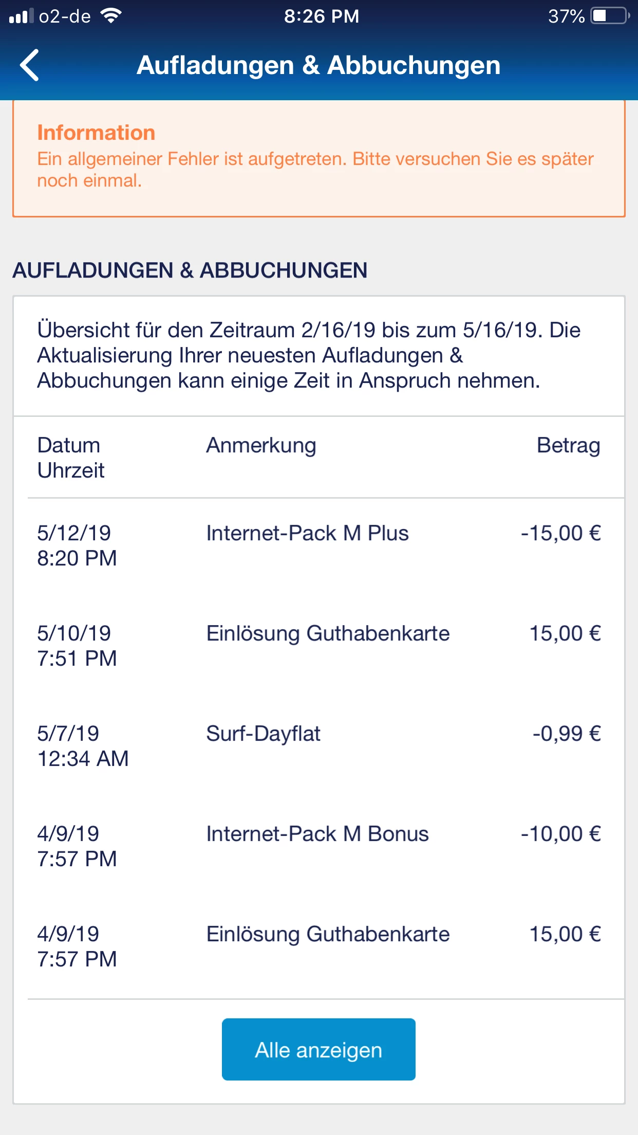 (Nicht Aufladungen & Abbuchungen)