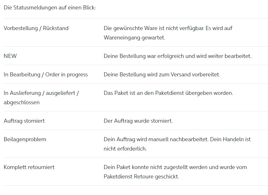 Der jeweilige Bestellstatus ist in Bearbeitung?