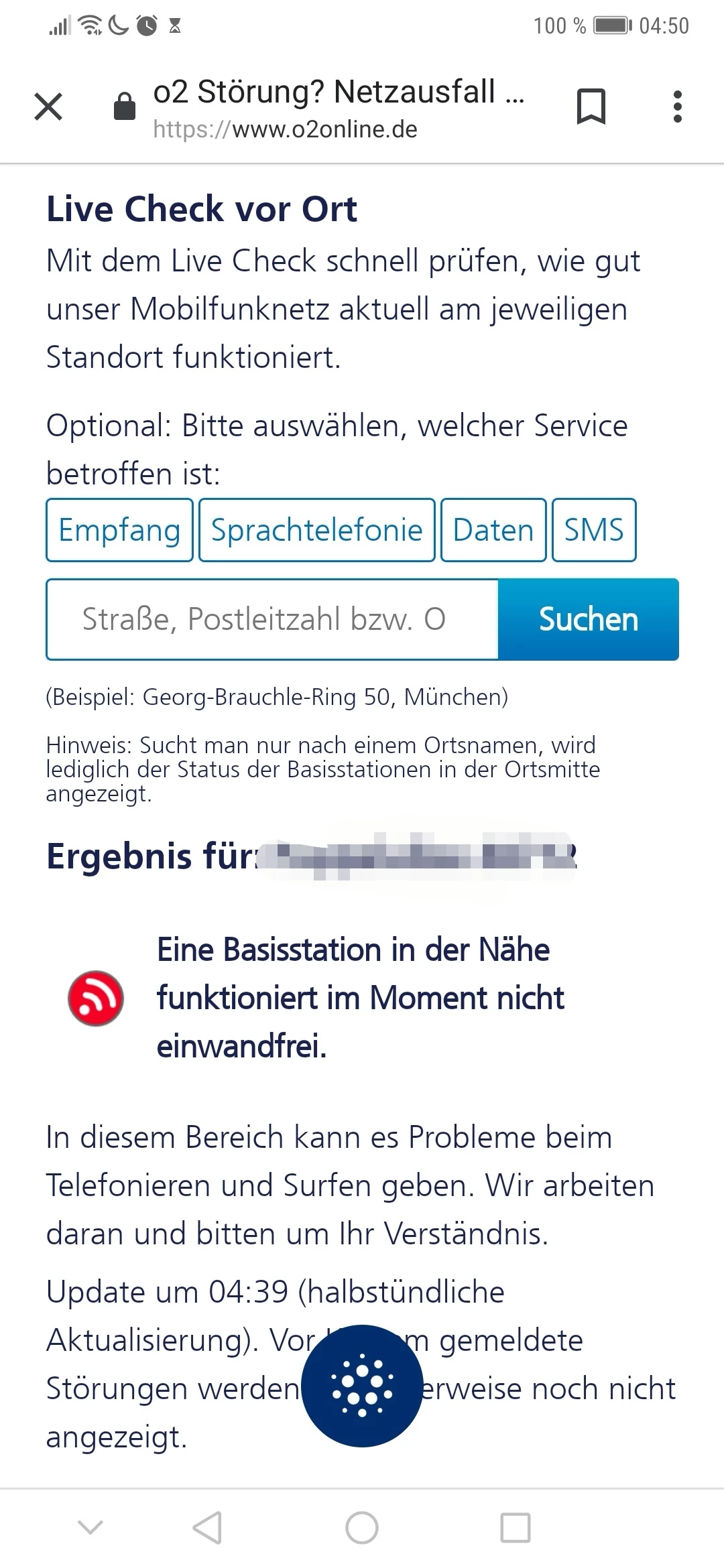 Geht es dabei um die bei uns hinterlegte Adresse? Denn dort kann ich aktuell keine bekannte Störung erkennen. Hattest du zuletzt eine Störungsmeldung über den Live Check hinterlegt?