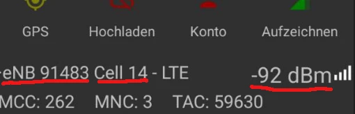 Falls es ein Android Smartphone ist, vielleicht magst du dir ja mal Cellmapper installieren, und die erste Zeile der App hier posten?