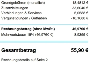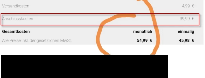 Wenn du Hilfe benötigst dann musst du auch die Hilfe annehmen. Lustiger Weise hast du zwar den monatlichen Preis wiederholt aber nicht die Einmalkosten. Aber das steht, wie geschrieben genau in der Rechnung!