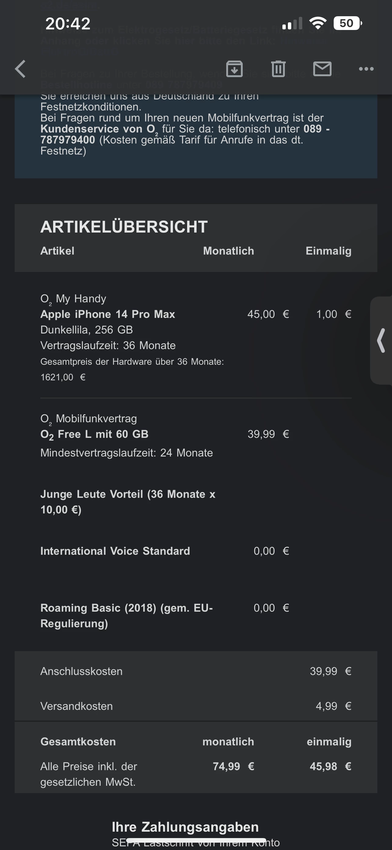 die Sim wird separat versandt.