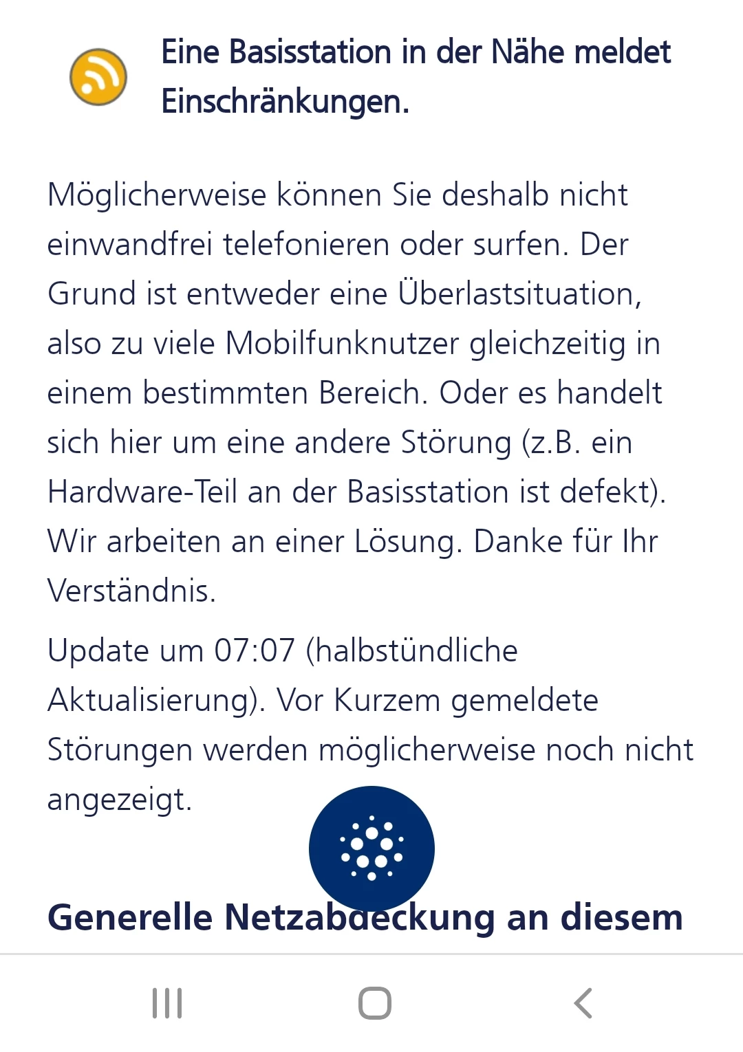 Ich habe bei mir am Handy und Tablet(multicard) kein mobiles Internet. Meine Eltern, welche im gleichen Haus wohnen, haben allerdings einwandfreies mobiles Netz. Ich habe auch beim live Check die info im Bild erhalten.