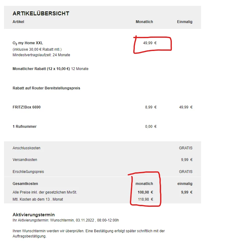 hey leute Soll ich 58,98 Euro oder 108 Euro monatlich an O2 zahlen?