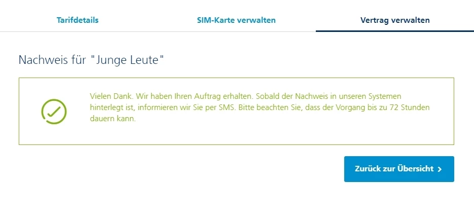 dein Junge-Leute-Nachweis ist inzwischen hinterlegt, du bist also legitimiert. ☑️