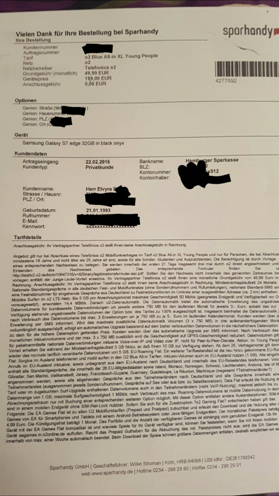 Ich weiß nicht,was Sparhandy euch übermittelt hat, aber ich kann den abgeschlossenen, unterschriebenen Vertrag zuschicken.