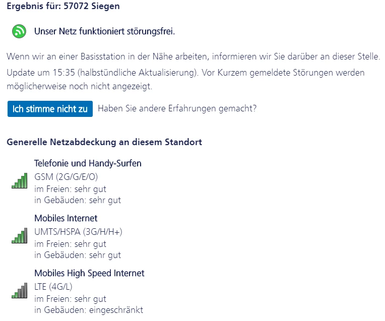 kein LTE Empfang in 57072 Siegen