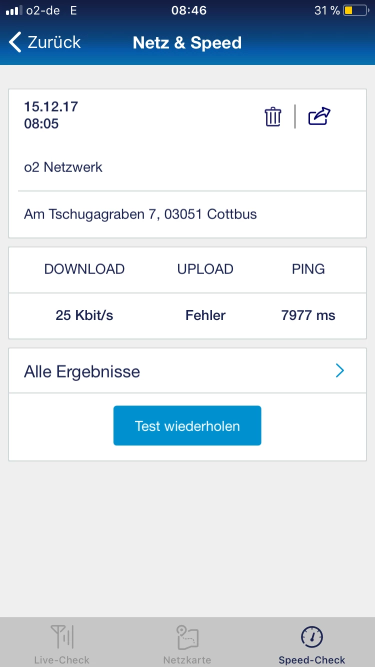 Seid April 2016 kein Mobiles Internet innerhalb von Gebäuden im PLZ Bereich 03051. o2 Netzabdeckung nicht nutzbar.