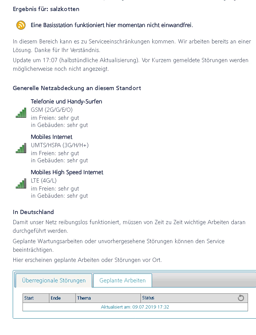 Gern habe ich einmal für dich nachgesehen. Eine Basisstation in deiner Nähe funktioniert tatsächlich nicht einwandfrei. Die Kollegen arbeiten daran, wie lange es aber dauern wird kann ich dir nicht sagen.