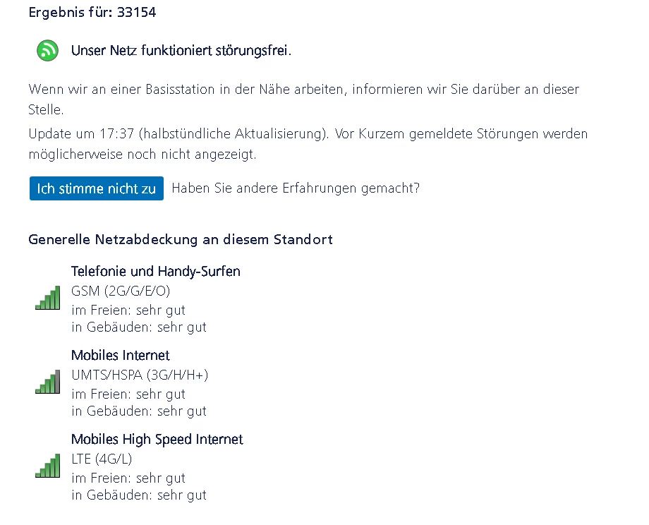 33154 funktioniert die Basis St ist doch eine Top Netz Abdeckung dort, aber eine Basis St in Salzkotten in der Nähe eben nicht.