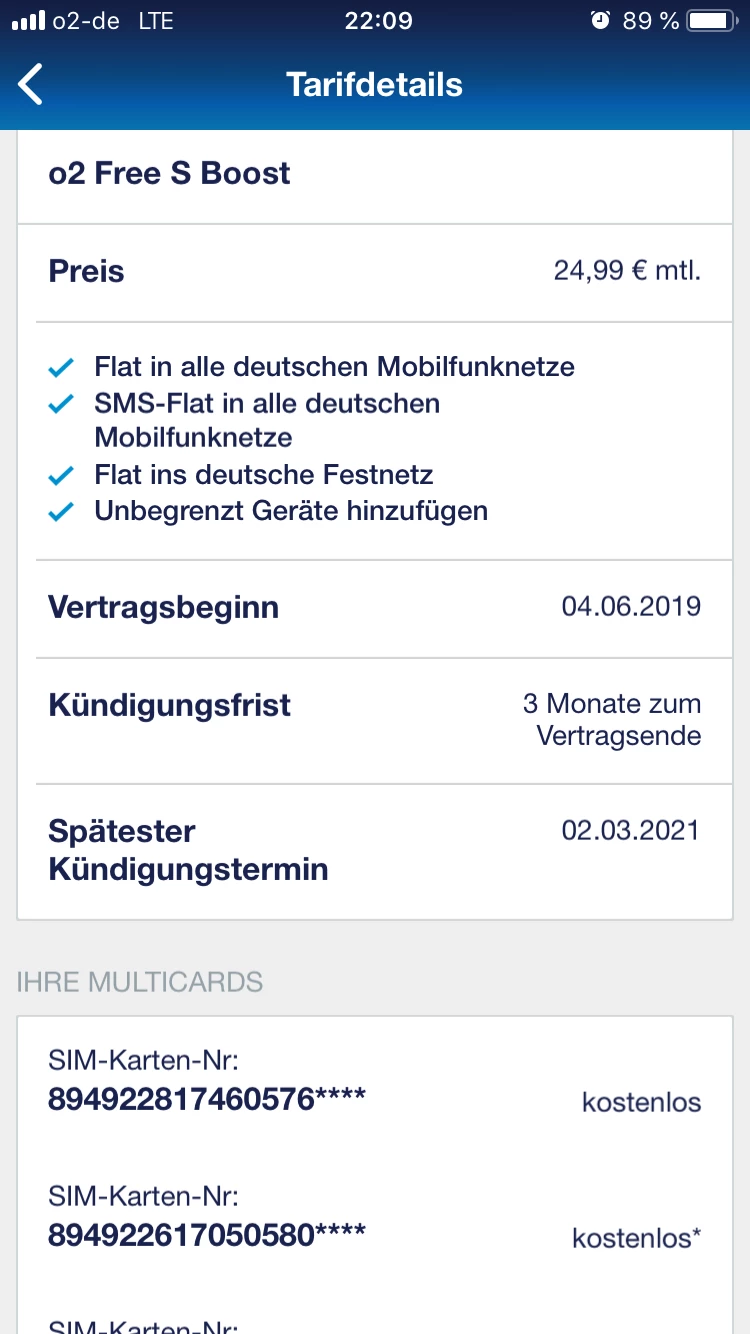 Ein Tarifwechsel wurde allerdings in den "o2 Free S Boost" gemacht mit 3 GB zum reduzierten Preis von 14,99 EUR.