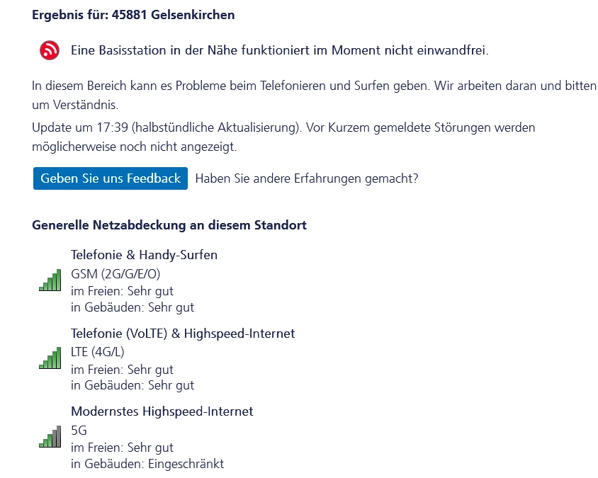 Du kannst auch gern eine Störung im Livechek melden.