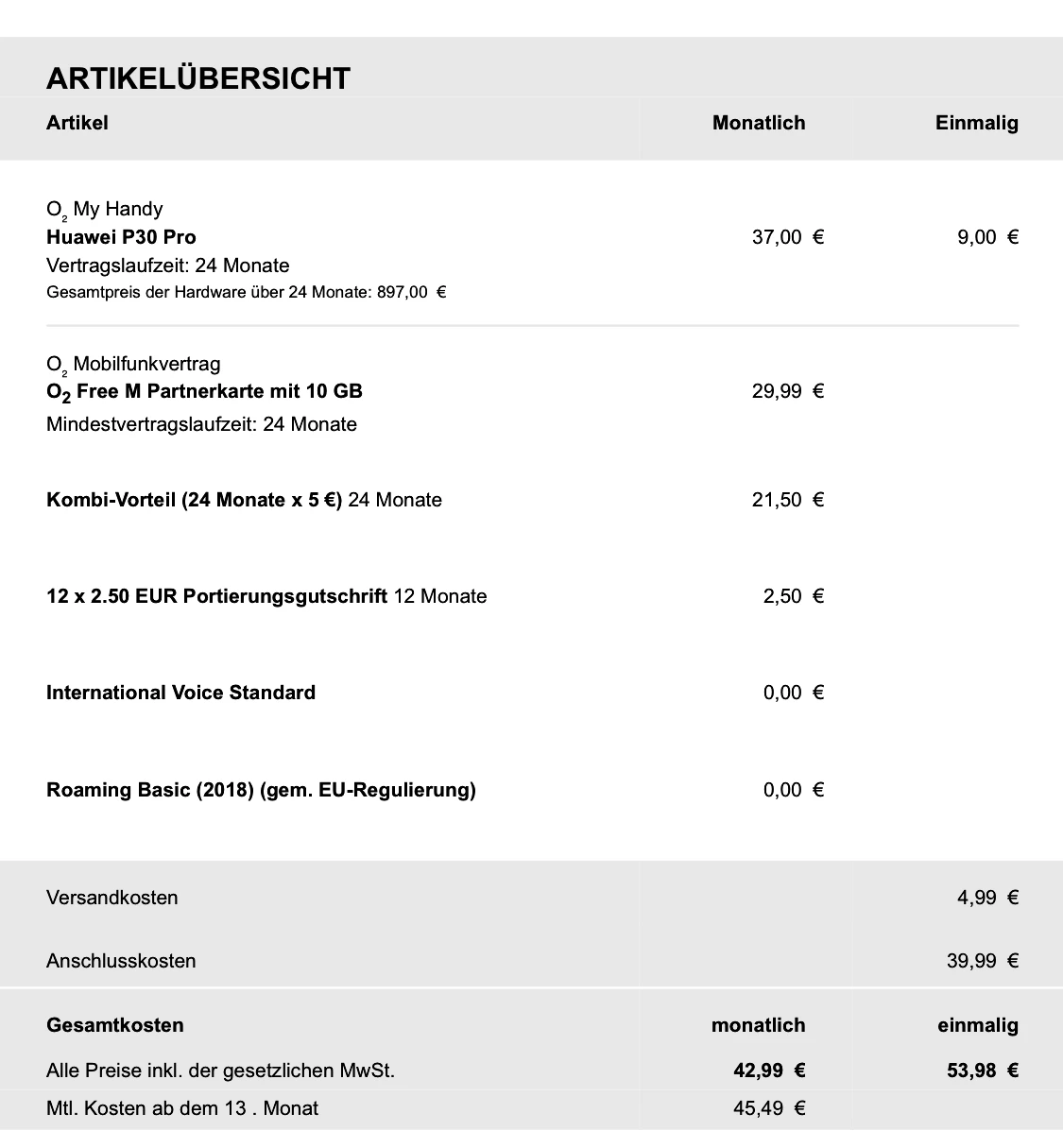 Mein Vertrag mit dem junge Leute Rabatt habe ich zum Juni gekündigt und stattdessen den Huawei p30 Pro bestellt.
