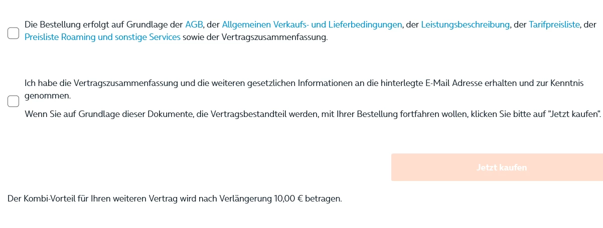 Ich habe letzte Woche meinen Mobilfunkvertrag online verlängert. Ich hatte vorher O2free S Boost. Habe meinen Vertrag auf O2 Grow verlängert(Gebertarif). In der Zusammenfassung stand, dass ich auf meinen zweiten Tarif (Partnervertrag O2 free boost plus)10 € Kombivorteil bekomme.  Bisher wurde dieser mir noch nicht gewährt. Hatte und habe aktuell noch 5€. Ich habe bereits schon ein paar Tage gewartet zwecks der Aktivierung. Ich habe zusätzlich noch einen O2 my Home M DSL Tarif auf den ich auch 5€ Kombivorteil bekomme. Alles unter einer Kundennummer.