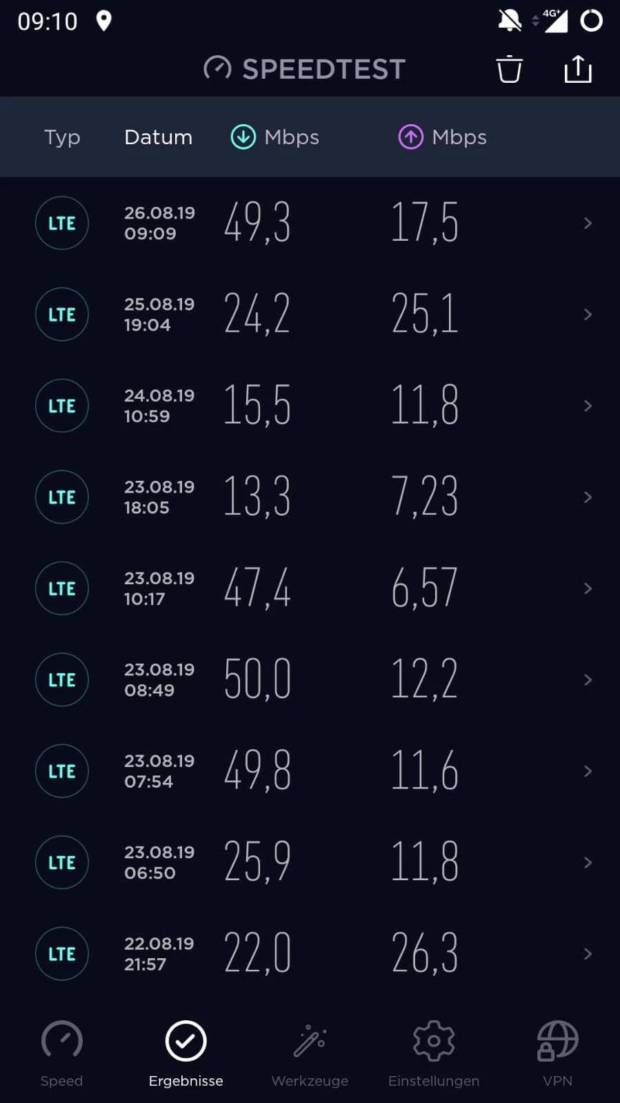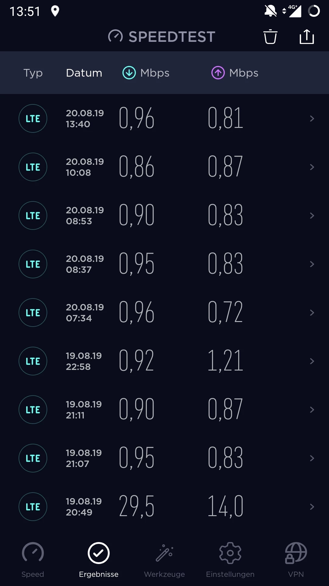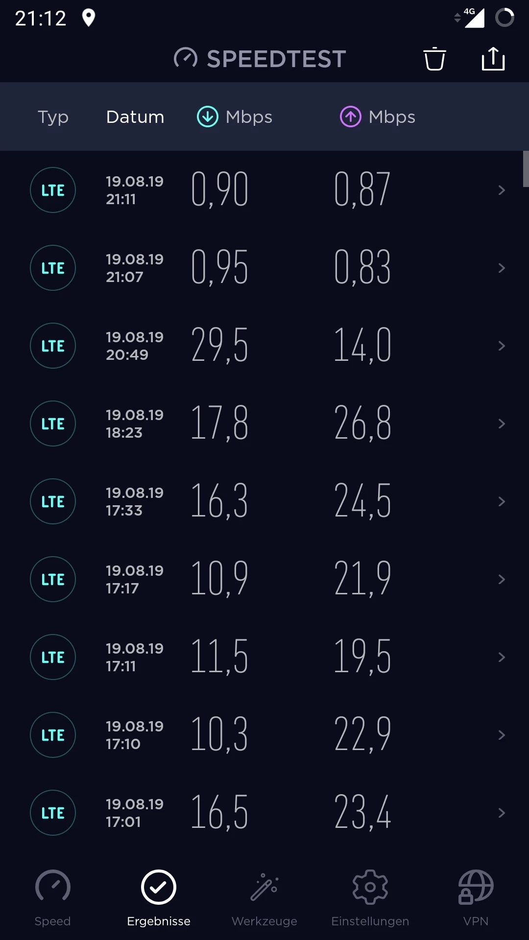 ich würde trotzdem den aktuellen Stand hier posten. Seit Donnerstag Mittag scheint das Problem behoben zu sein. Ich schicke mal eine Screenshot. Ich schaue weiterhin unregelmäßig in den speedtest. Sollte sich das Problem erledigt haben, danke ich der Community und der Technik und freue mich auf ein "großzügiges"Entgegenkommen von O2 für die Beeinträchtigungen der letzten vier Wochen;-).