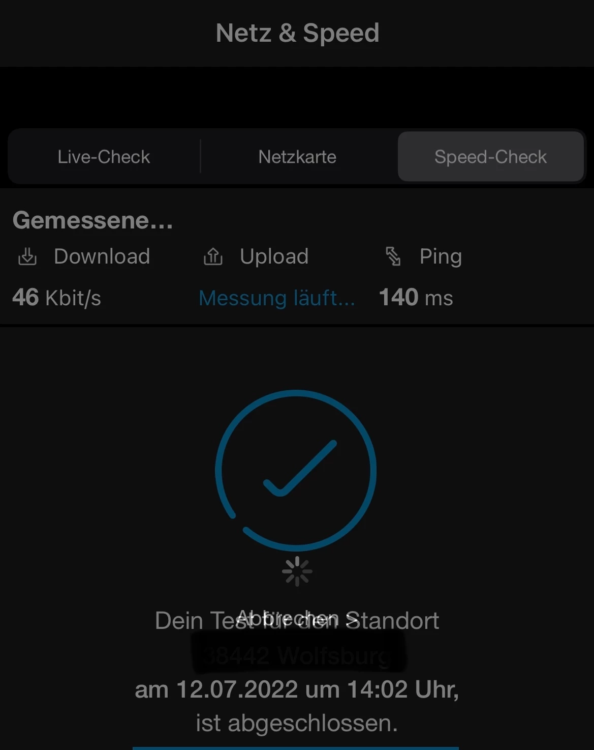 Das ergab der Speedtest. In der Nähe wird an der Basisstation gearbeitet. Das ist aber schon seit bald zwei Monaten der Fall.
