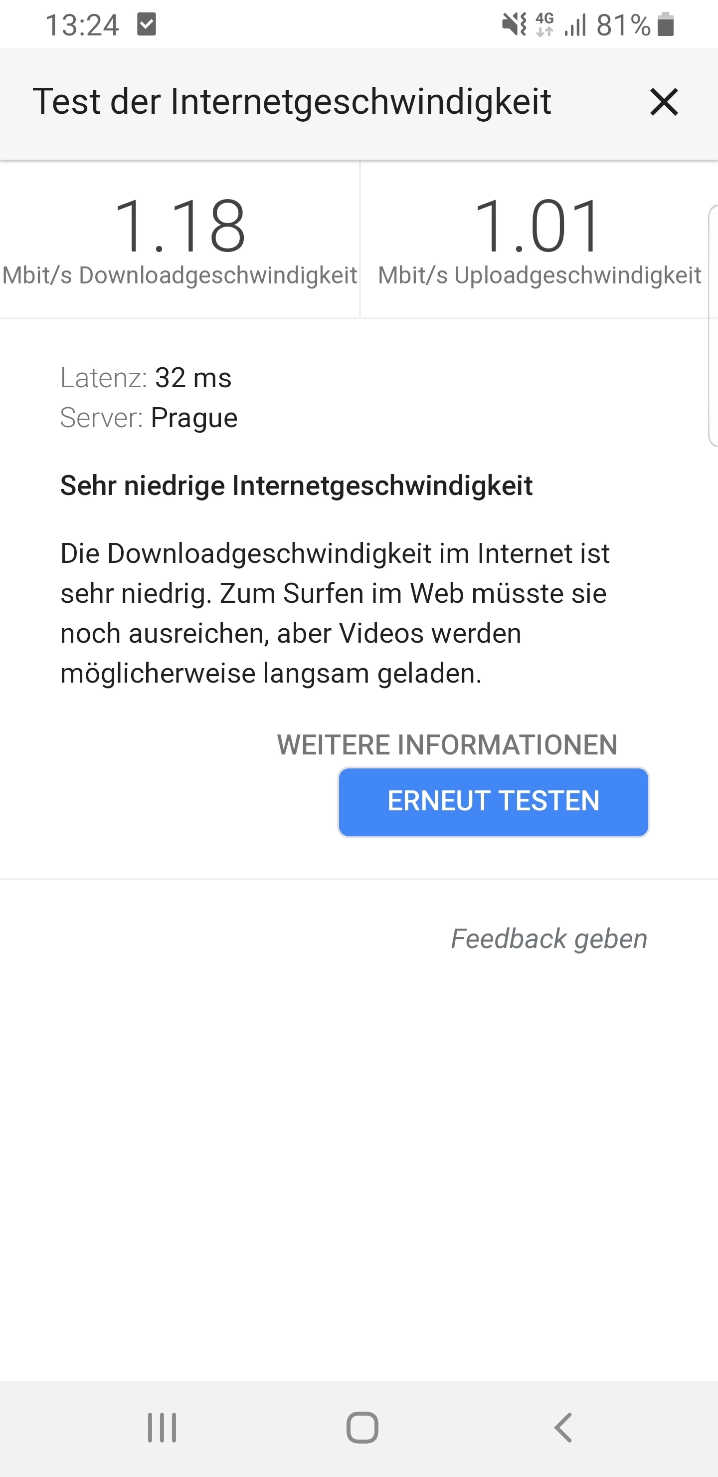 Trotz LTE lud alles sehr langsam