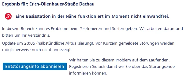 Eine Basisstation in der Nähe funktioniert im Moment nicht einwandfrei.