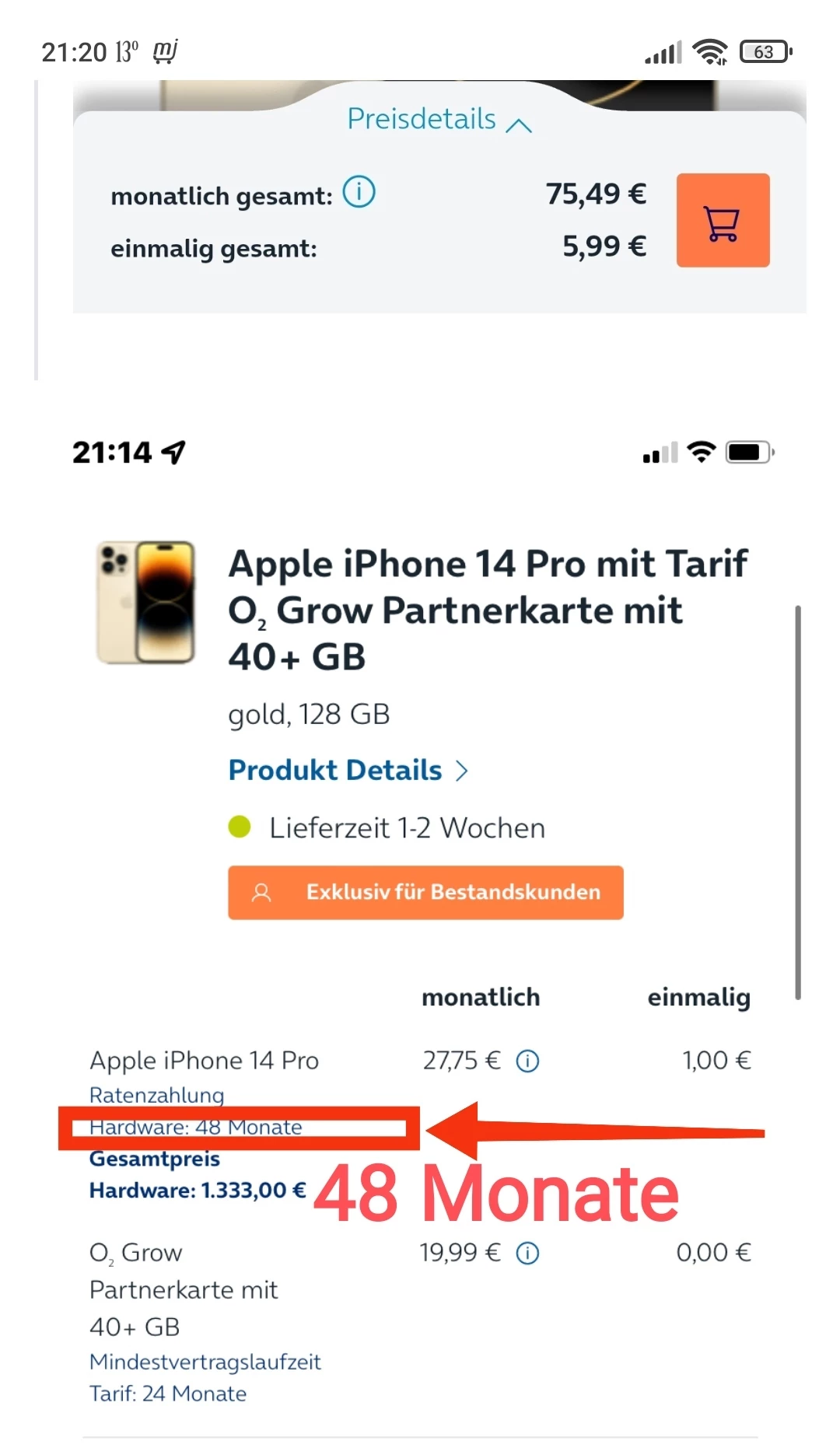Es sagt keiner, dass es nicht korrekt ist .. nur, dass du das iPhone 14 Pro 128GB bei deinem Angebot über 48 Monate = 4 Jahre Ratenzahlung läuft.