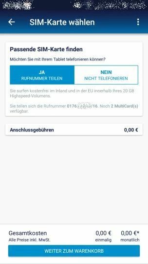 Kann man dann gleich eine zweite "Nicht telefonieren" Karte auswählen oder wird das einzeln verschickt? Der genion Tarif hat einen surf 3Cent/Min Tarif. Wenn ich die Nicht telefonieren Karte wähle, und oben steht, dass es von den verfügbaren 20Gb abgezogen wird, hab ich trotzdem ein ungutes Gefühl, weil "bei Telefonieren", die genion nummer kam.