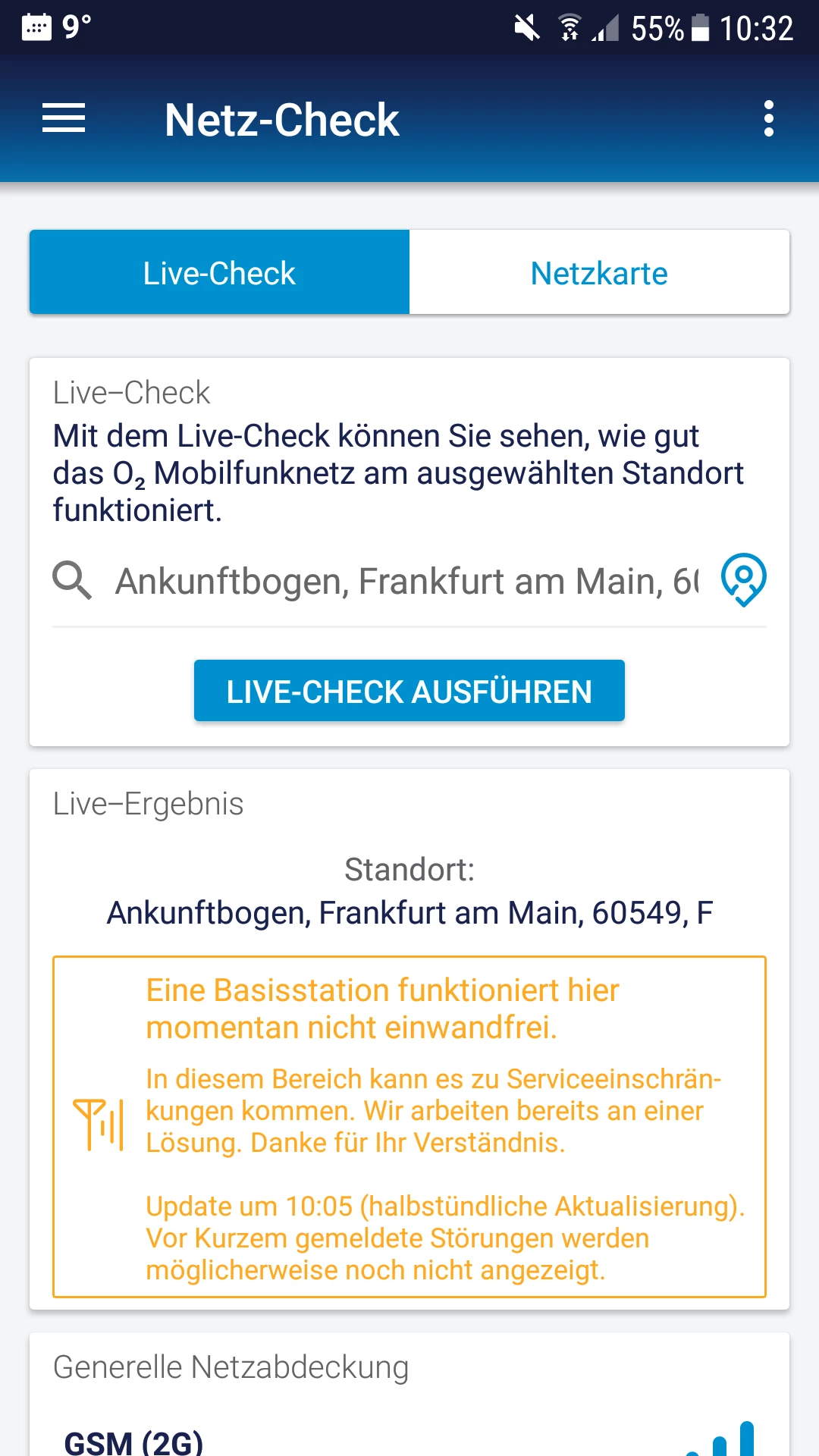 Ich bin seit 17 Jahren am Flughafen Frankfurt beschäftigt und nutze seit längerer Zeit über den Rahmentarif (Fraport AG) für Mitarbeiter das O2 Netz. Bisher war es kein Problem an meinem Arbeitsplatz der sich am Terminal 1 über dem Parkhaus befindet das Internet zu nutzen. LTE war im Gebäude und außerhalb immer Vorhanden. Seit einem Jahr wird LTE zwar angezeigt aber es besteht keine Internetverbindung. Sogar Videotelefonie war ohne Aussetzer möglich. Es geht meinen Kollegen (ca 45 O2 Nutzer) allein in meiner Abteilung genauso.. Es wurden mehrere Störtickets schon geöffnet und geschlossen ohne Erfolg. Ich bekomme seit über einem Jahr in meiner O2 APP angezeigt das eine Störung an der Basisstation vorliegt. Ich finde es einfach unverschämt das auf die Störung nicht eingegangen wird. Wir erwarten keine Wunder nur sollte es nach einem Jahr genug Zeit gegeben haben die Störung zu beheben. Sollte sich bis Ende des Jahres daran nichts verbessern sind meine Kollegen und ich bereit eine Sammelklage einzureichen und ich denke wenn dieser Gedankengang am Flughafen veröffnetlicht wird dann werden sich die restlichen Mitarbeiter gewiss auch daran beteiligen. Die meisten haben wie ich ein Premium XL Tarif mit 10GB Volumen wovon im Monat nicht mal 2GB verwendet werden können weil die meiste Zeit verbringt man halt auf der Arbeit.
