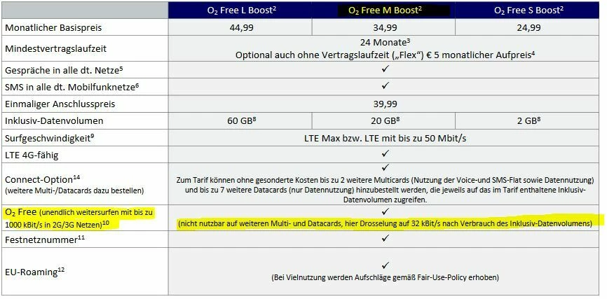 O2 Boost M: Multicards ohne 64kbits Drosselung?