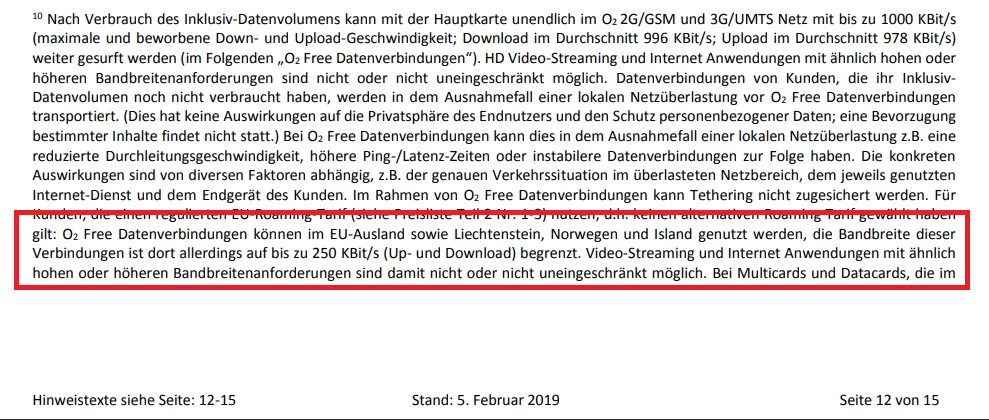 O2 Free 1 Mbit/s EU Roaming auch mögich?